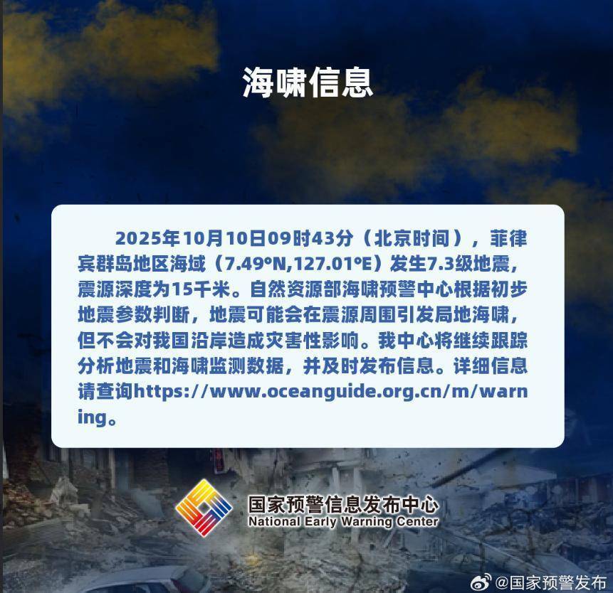 据@国家预警发布 消息:自然资源部海啸预警中心根据初步地震参数判断,地震可能会在震源周围引发局地海啸,但不会对我国沿岸造成灾害性影响。